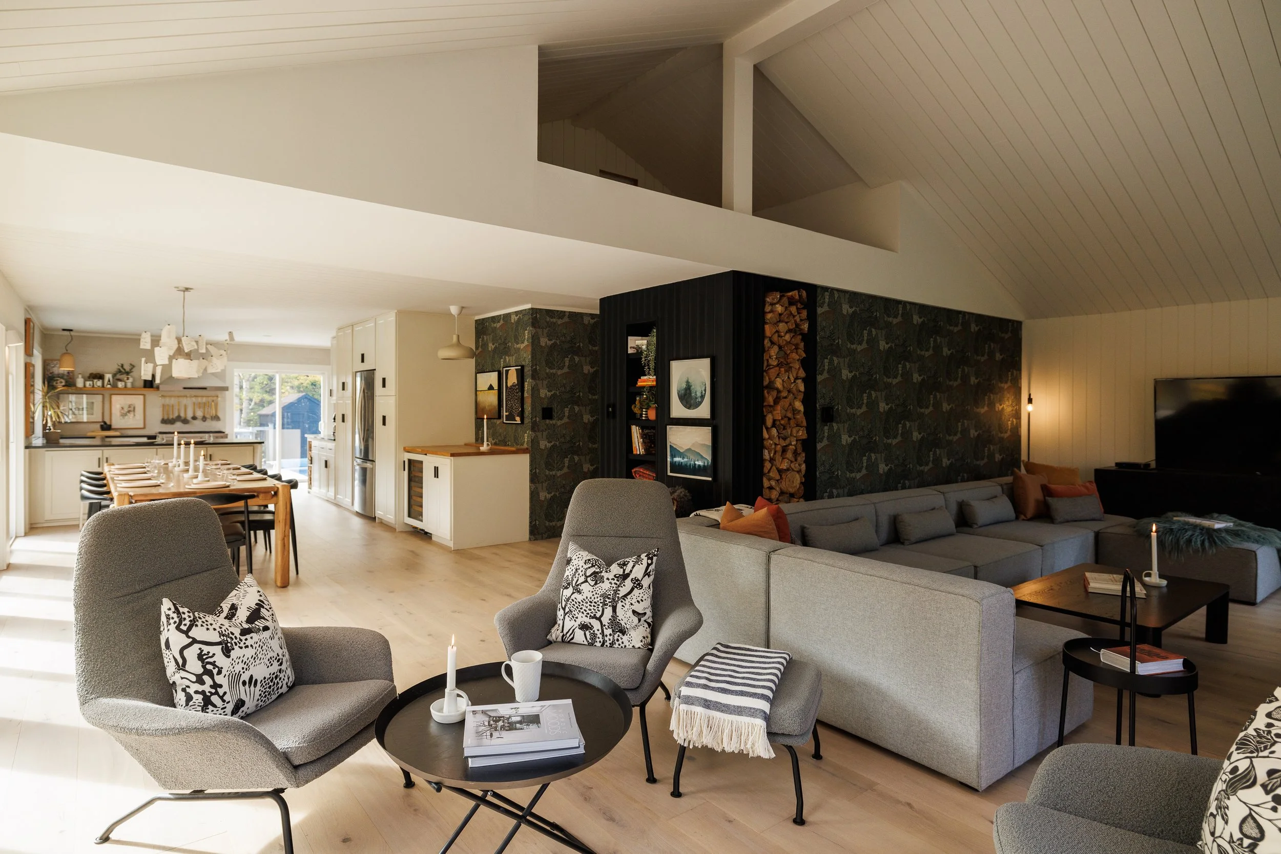 A modern Nordic retreat set on the banks of a pristine salmon river, this five-bedroom home is crafted for relaxation and restored connection with nature. Sleeping up to fourteen guests, it lends a place to host to both intimate escapes and group gatherings.